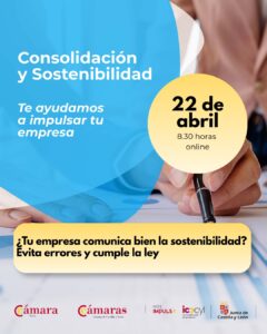 La Cámara de Comercio de Soria organiza la jornada online “¿Tu empresa comunica bien la sostenibilidad? Evita errores y cumple la ley”, dirigida a empresas interesadas en comunicar sus compromisos ambientales con seguridad jurídica, credibilidad y rigor. Será impartida por nuestra estimada compañera María Pascual el próximo 22 de abril de 2026, en horario de 08:30 a 10:30 horas.