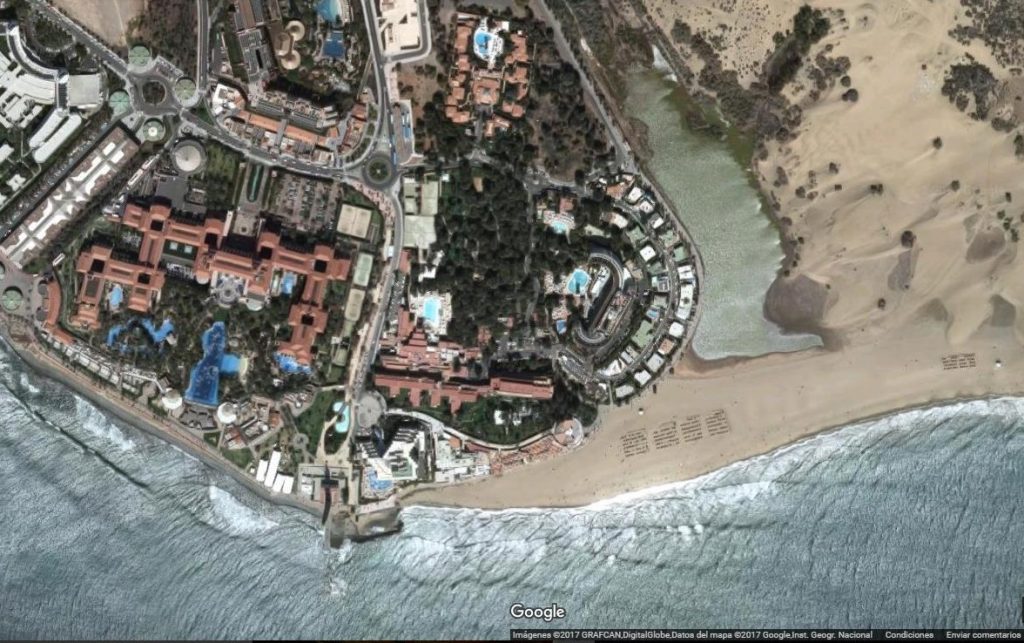 Nuevamente los tribunales de justicia han priorizado los criterios ambientales frente a los urbanísticos, como ya ocurriera con la sentencia del Tribunal Supremo del año 1978 y se ha logrado parar la ampliación de una instalación hotelera situada en el Palmeral de las Dunas de Maspalomas. Como puede verse en la fotografía aérea esta zona está fuertemente antropizada habiendo llegado el desarrollo urbanístico hasta el límite de integrar en el interior de una instalación hotelera gran parte de la zona de palmeras de este oasis, que tiene una gran singularidad por sus valores ambientales. La ampliación propuesta del hotel suponía un nuevo avance de la urbanización (en su modalidad de edificación) en esta reserva natural de Gran Canaria, siendo un claro ejemplo de cómo, poco a poco, paso a paso, la presión humana va urbanizando espacios naturales, creando una presión sobre estos espacios que lógicamente impide su regeneración natural, al margen de los aspectos legales de cada situación concreta. Otra gota más al vaso, hasta que desborde.